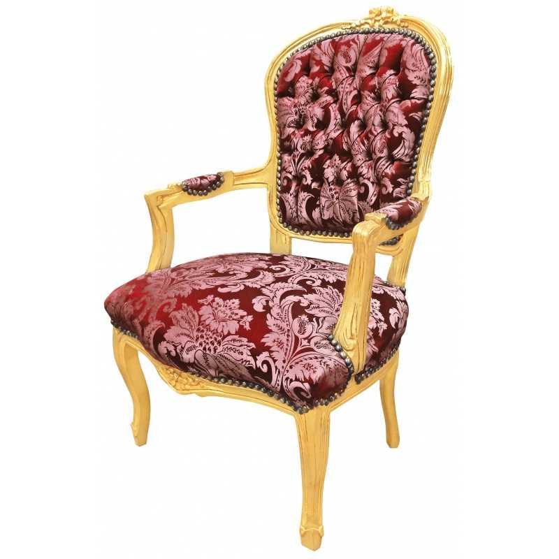 Baroque Louis XV style - Armchair - Gold/Red - Classic furniture -all rooms furniture - Red flowery satin fabric - MACE