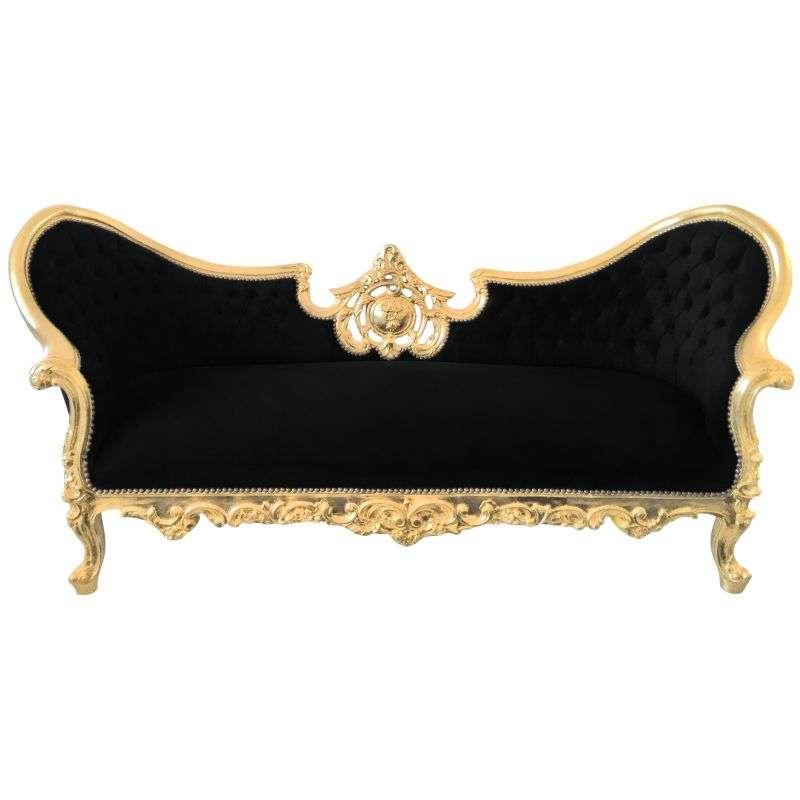 Baroque Luxury Style Napoleon III - Medallion - Gold/Black - Classic Furniture - Living Room Furniture - Black Velvet - Three Seater - MACE