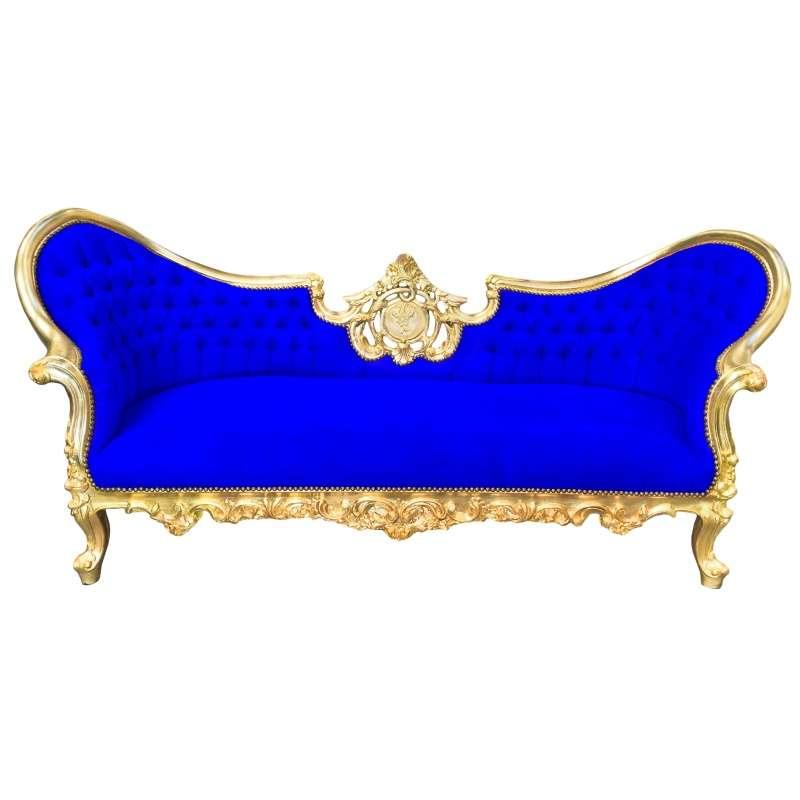 Baroque Luxury Style Napoleon III - Medallion - Gold/Blue - Classic Furniture - Living Room Furniture - Blue velvet fabric - Three Seater - MACE