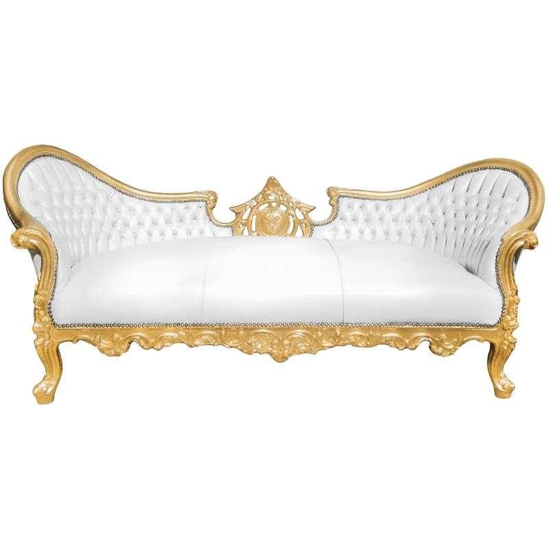 Baroque Luxury Style Napoleon III - Medallion - Gold/White - Classic Furniture - Living Room Furniture - White leather - Three Seater - MACE
