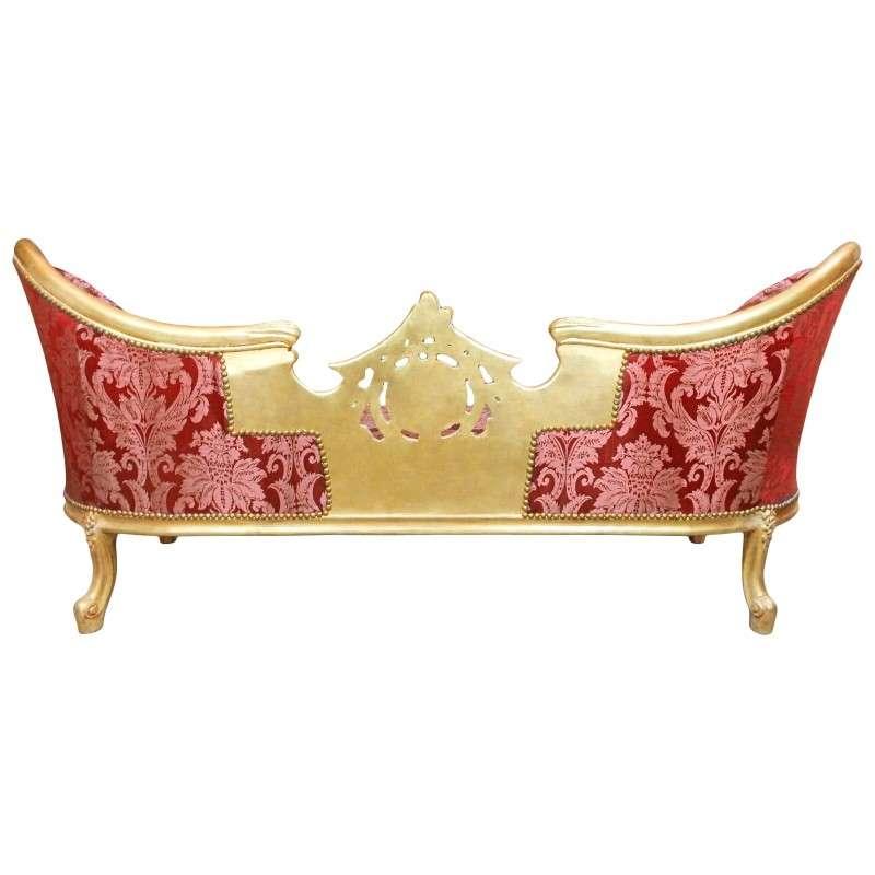Baroque Luxury Style Napoleon III - Medallion - Gold/Red flowery - Classic Furniture - Living Room Furniture - Red flowery fabric - Three Seater - 210 cm - MACE