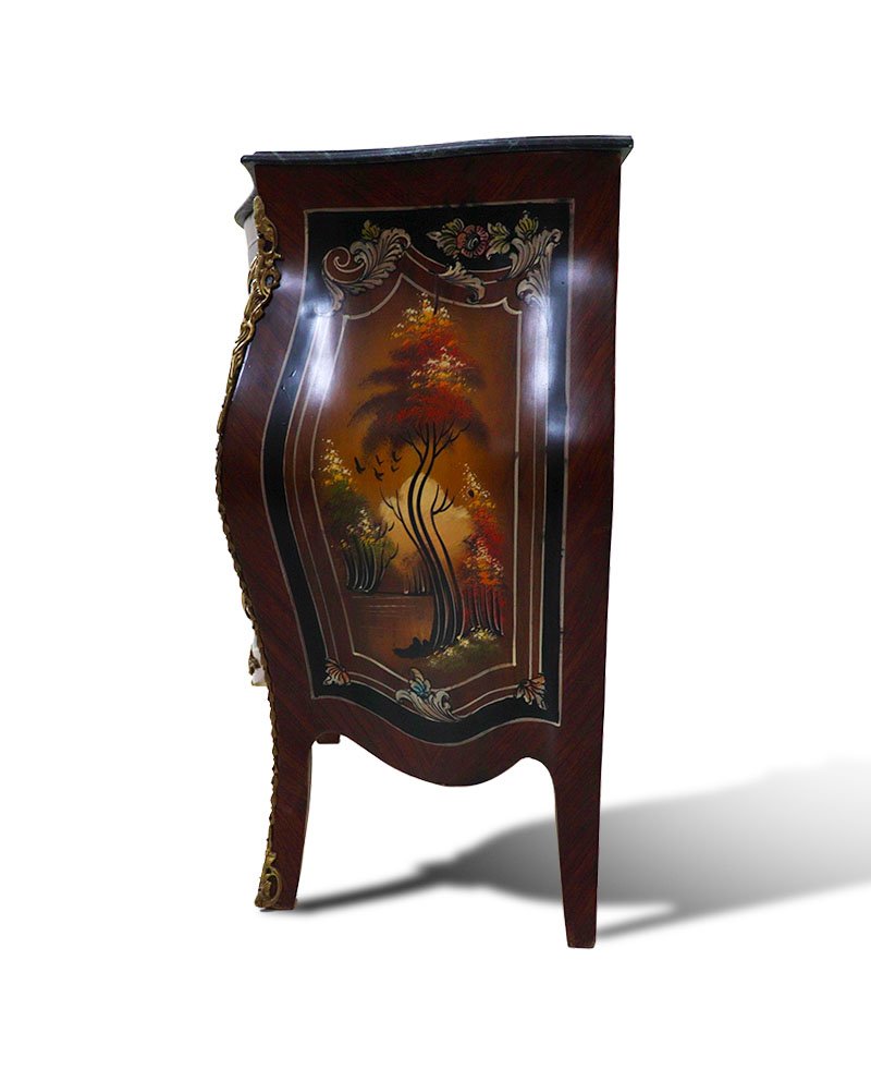 MACE Heritage – Baroque Louis XV Chest of Drawers with Hand-Painted Artwork, Brass Hardware and Natural Marble Top