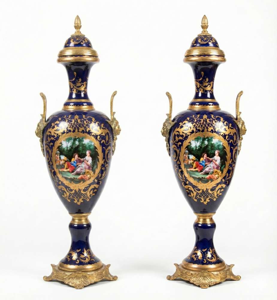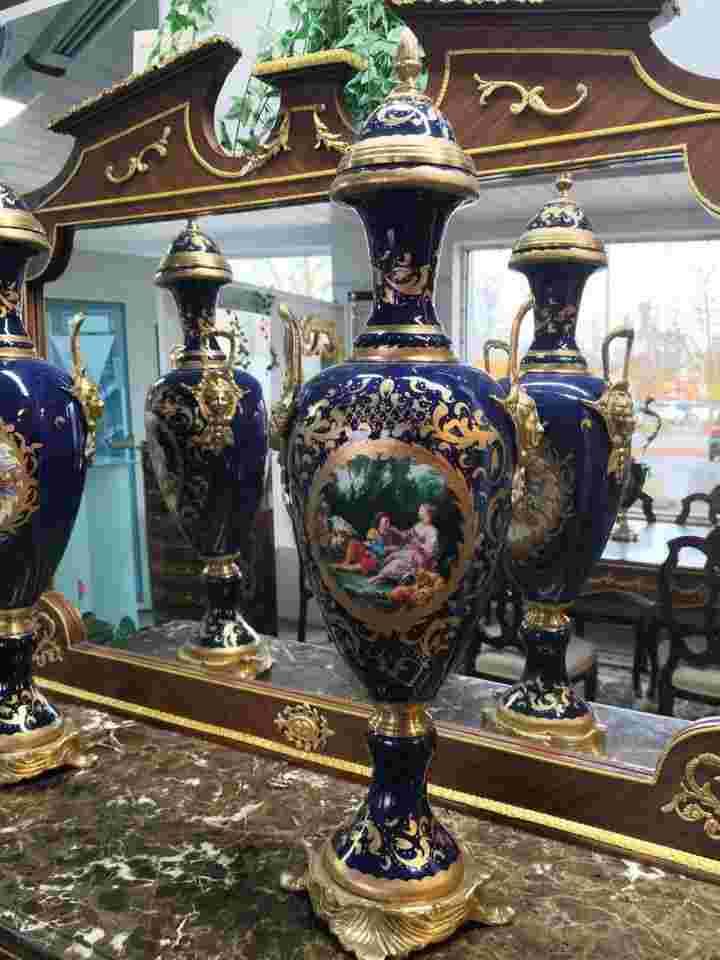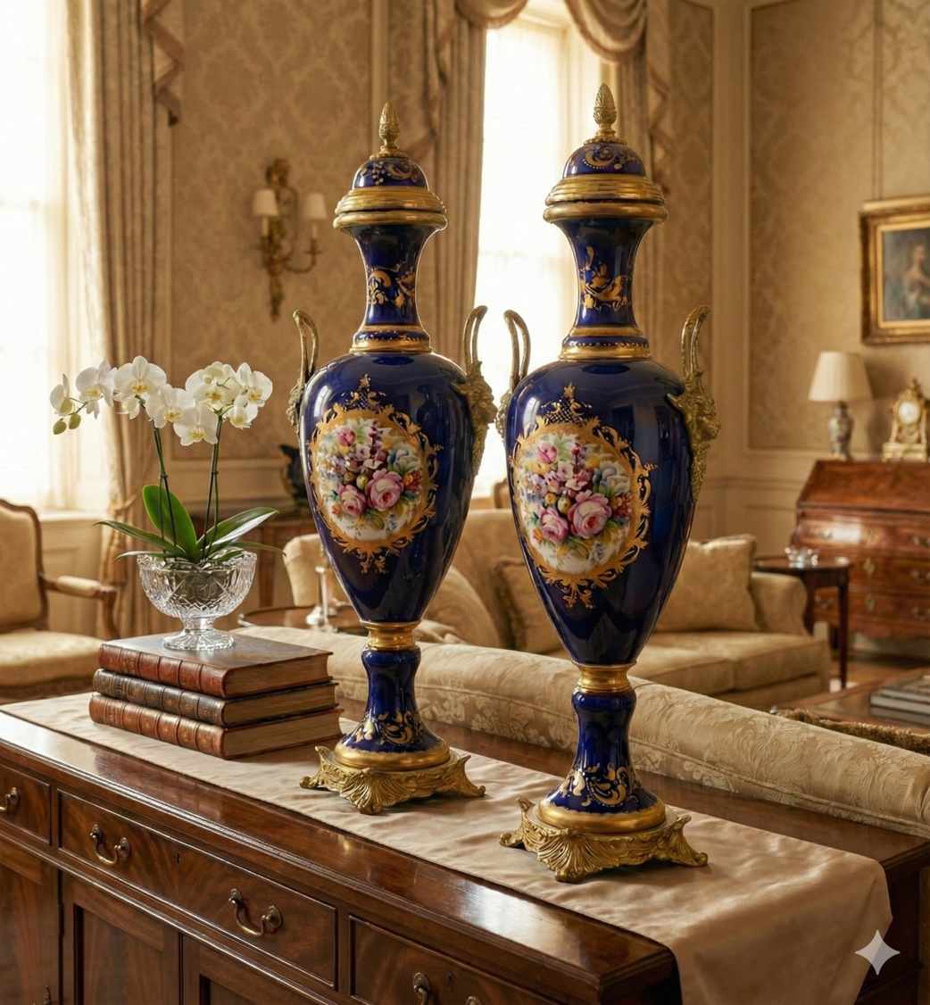 MACE Heritage – Baroque Romeo and Juliet Porcelain Vase Set – Brass Handle – Two Vases – 80 cm