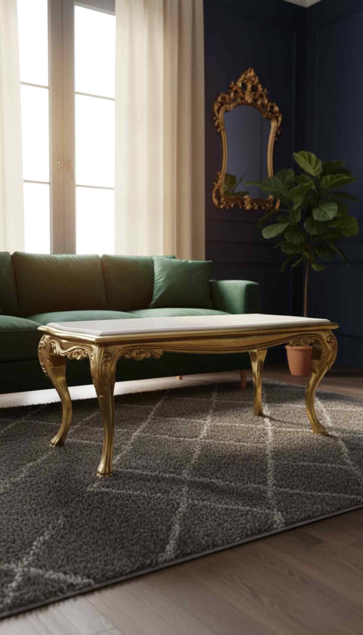 MACE Heritage – Bespoke Solid Brass Coffee Table with Natural Marble Top, Lion Claw Feet