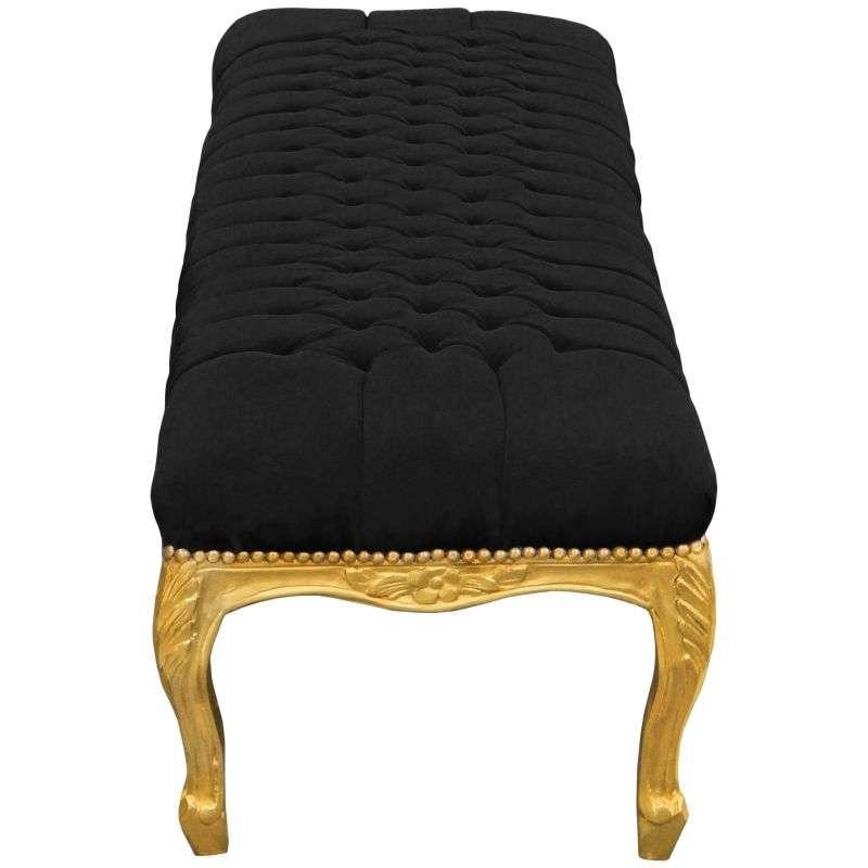 arocke Flachbank Louis XV - Schwarzer Samtstoff - Goldenes Holz - MACE