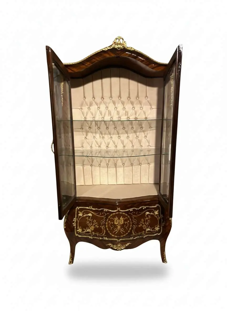 Etikett:MACE Heritage,Massivholz Vitrine,Wohnzimmer Vitrine klassisch,barockvitrine,vitrine barock,glasvitrine luxus,vitrine dunkelbraun gold,intarsien vitrine,messing applikationen,geschwungene glastüren,vitrine mit schublade,vitrine satin innenausstattung,champagner polster rückwand,boutique hotel vitrine,showroom vitrine,ausstellungsraum vitrine,rocaille elegance
